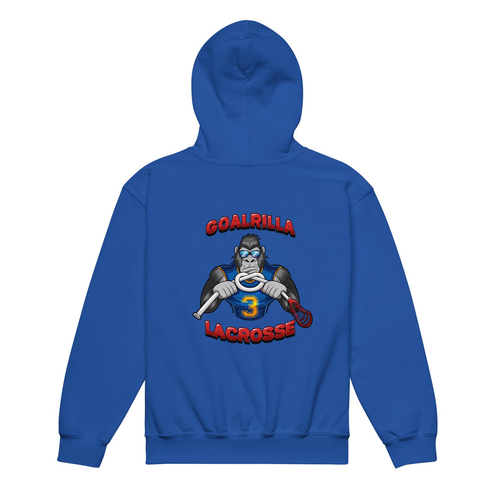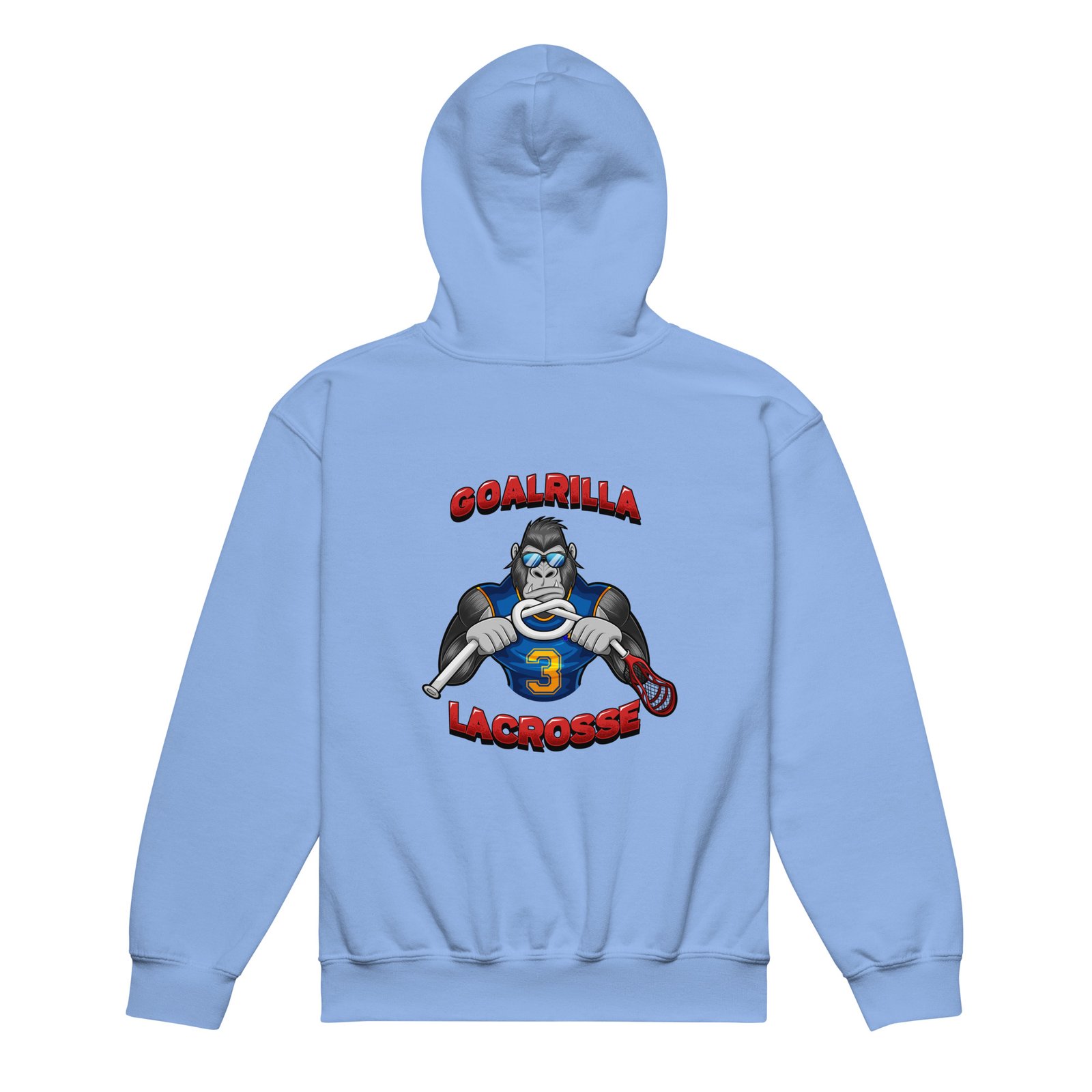Lacrosse long sticks are no match for Goalrilla. He’s fierce, and he lets his competitors know it. Check him out on this lacrosse hooded sweatshirt available in youth sizes.