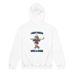 Show people you bring the attitude — and sharp wit — when you’ve got your hockey stick in hand. Check out this stylish hoodie for hockey players. Hooded sweatshirt youth sizes.