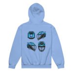 You know it. We know it. You look badder than bad wearing your lacrosse helmet. Carry that cool look forward by sporting this awesome helmet hoodie. Hooded sweatshirt in youth sizes.